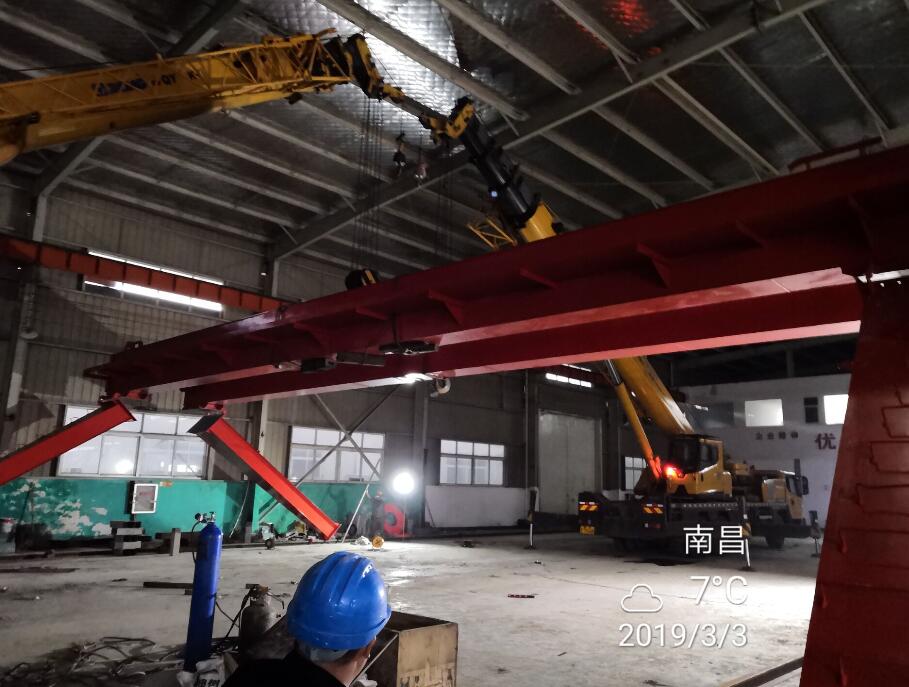 橋架在高架軌道上運行的一種橋架型起重機,又稱天車。橋式起重機的橋架沿鋪設(shè)在兩側(cè)高架上的軌道縱向運行,起重小車沿鋪設(shè)在橋架上的軌道橫向運行,構(gòu)成一矩形的工作范圍,就可以充分利用橋架下面的空間吊運物料,不受地面設(shè)備的阻礙。這種起重機廣泛用在室內(nèi)外倉庫、廠房、碼頭和露天貯料場等處。