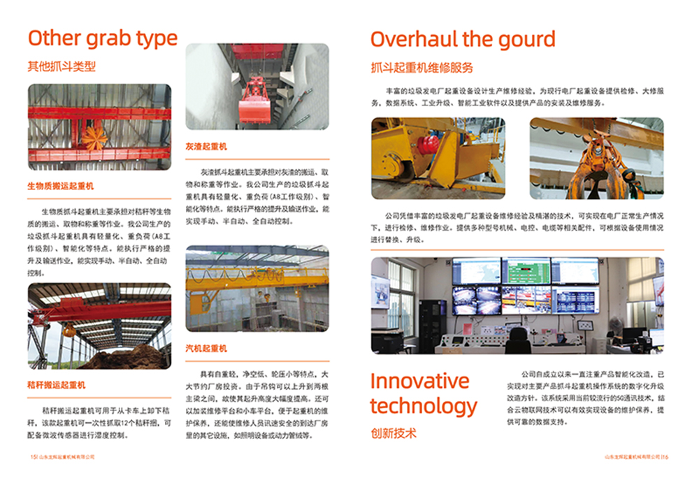 我們龍輝的起重設(shè)備從50KG到500噸甚至更大噸位,可以滿足客戶各種工況的需求,為客戶提供一站式的解決方案。我們?cè)诩夹g(shù)方面的持續(xù)創(chuàng)新,產(chǎn)品質(zhì)量的穩(wěn)步改進(jìn)以及完善的服務(wù)體系幫客戶節(jié)約成本,提高效率,長(zhǎng)期為客戶創(chuàng)造價(jià)值。我們的起重機(jī)不僅包含橋式起重機(jī)、門式起重機(jī)懸臂吊等普通起重機(jī),還包含新能源重卡換電站、全自動(dòng)噴涂設(shè)備、核廢料遠(yuǎn)程吊裝設(shè)備、全自動(dòng)抓斗起重機(jī)等智能起重機(jī).