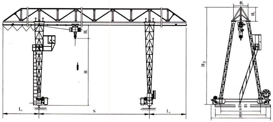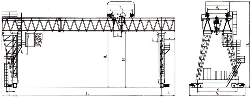 產(chǎn)品介紹:一、產(chǎn)品介紹: 門式起重機(jī) 是橋式起重機(jī)的一種變形,又叫 龍門吊 。它的金屬結(jié)構(gòu)像門形框架,承載主梁下安裝兩條支腳,可以直接在地面的軌道上行走。主梁兩端可以具有外伸懸臂...
