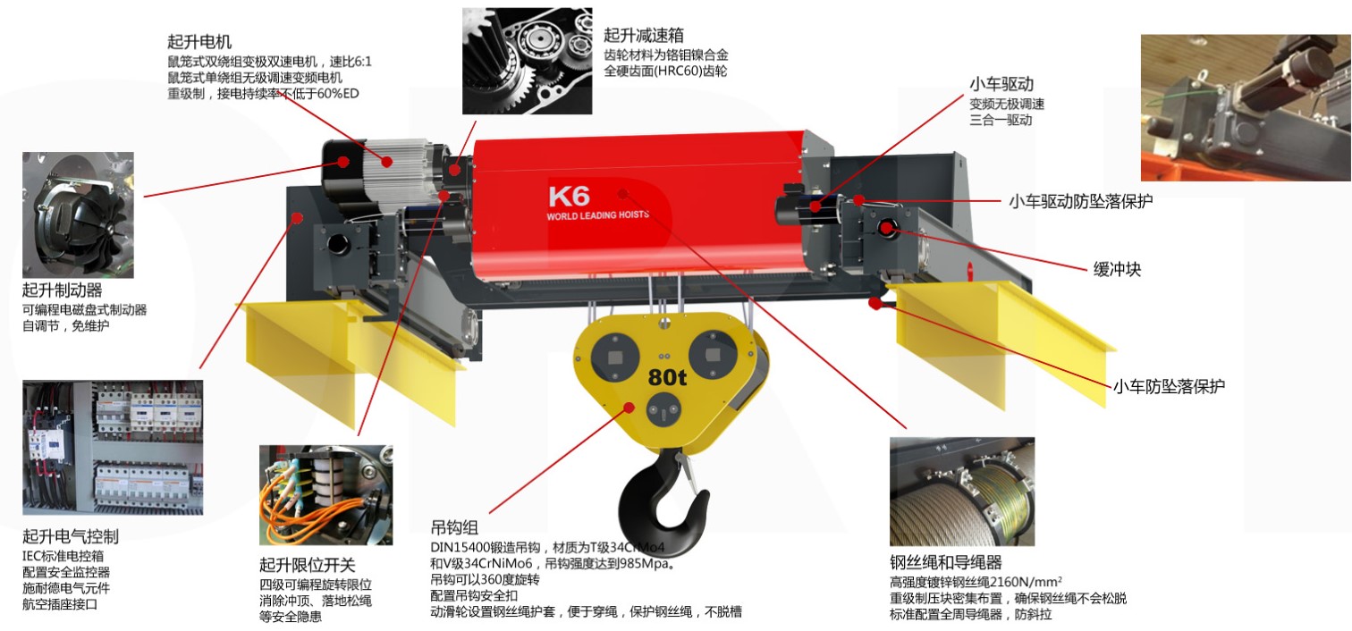 (3)提升電動機(主鉤、副鉤)驅(qū)動重物做垂直升降運動。