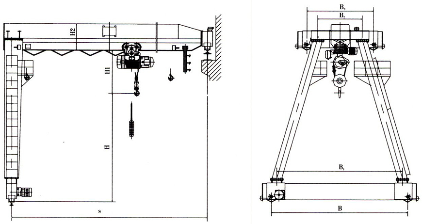 半龍門吊起重機(jī)是一種常見(jiàn)的起重設(shè)備,通常用于吊裝和搬運(yùn)重量較大的物體。它由支架、橫梁、起重機(jī)械、電氣系統(tǒng)等組成。