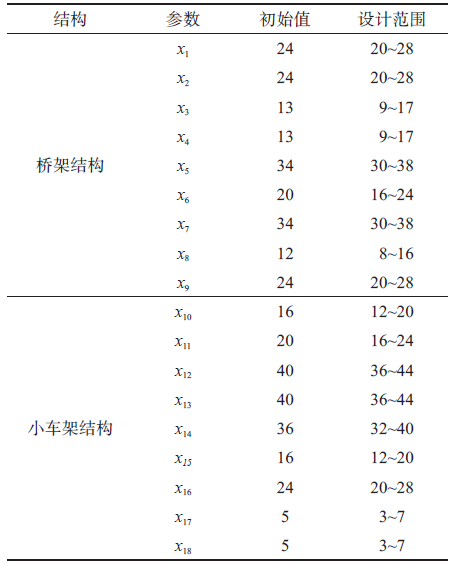 起重機(jī)金屬結(jié)構(gòu)關(guān)鍵參數(shù)的設(shè)計(jì)范圍(mm)