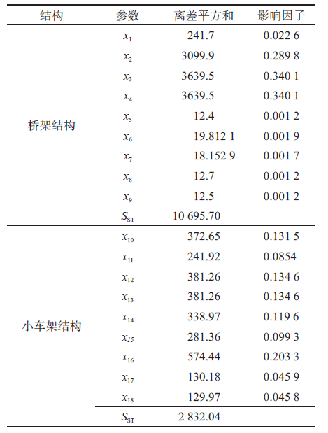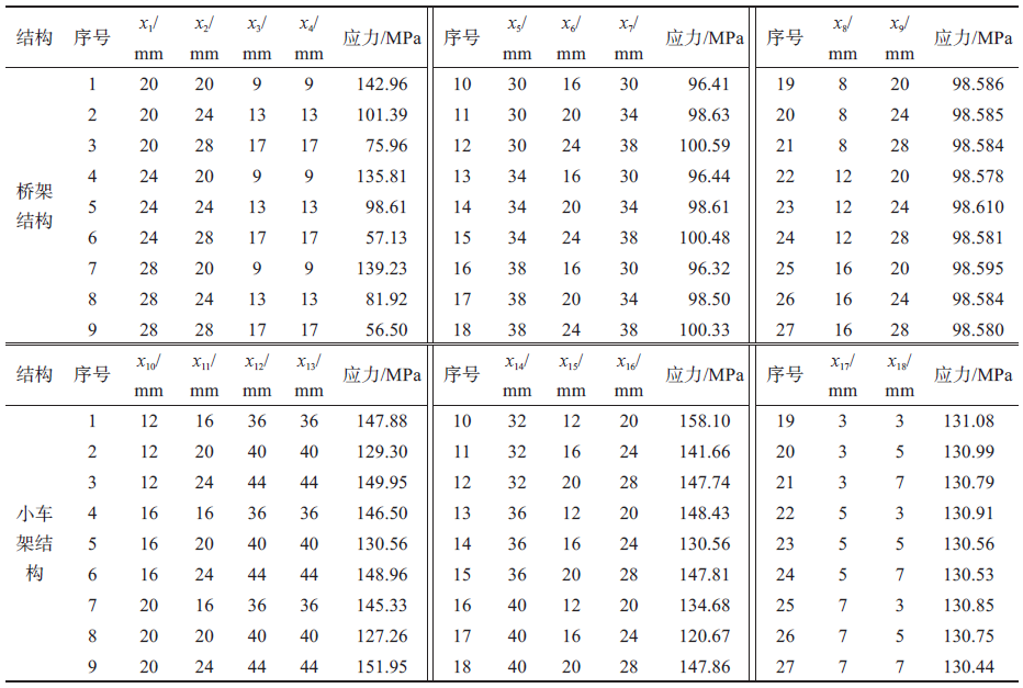 不同參數(shù)水平下起重機(jī)金屬結(jié)構(gòu)的最大應(yīng)力(MPa)