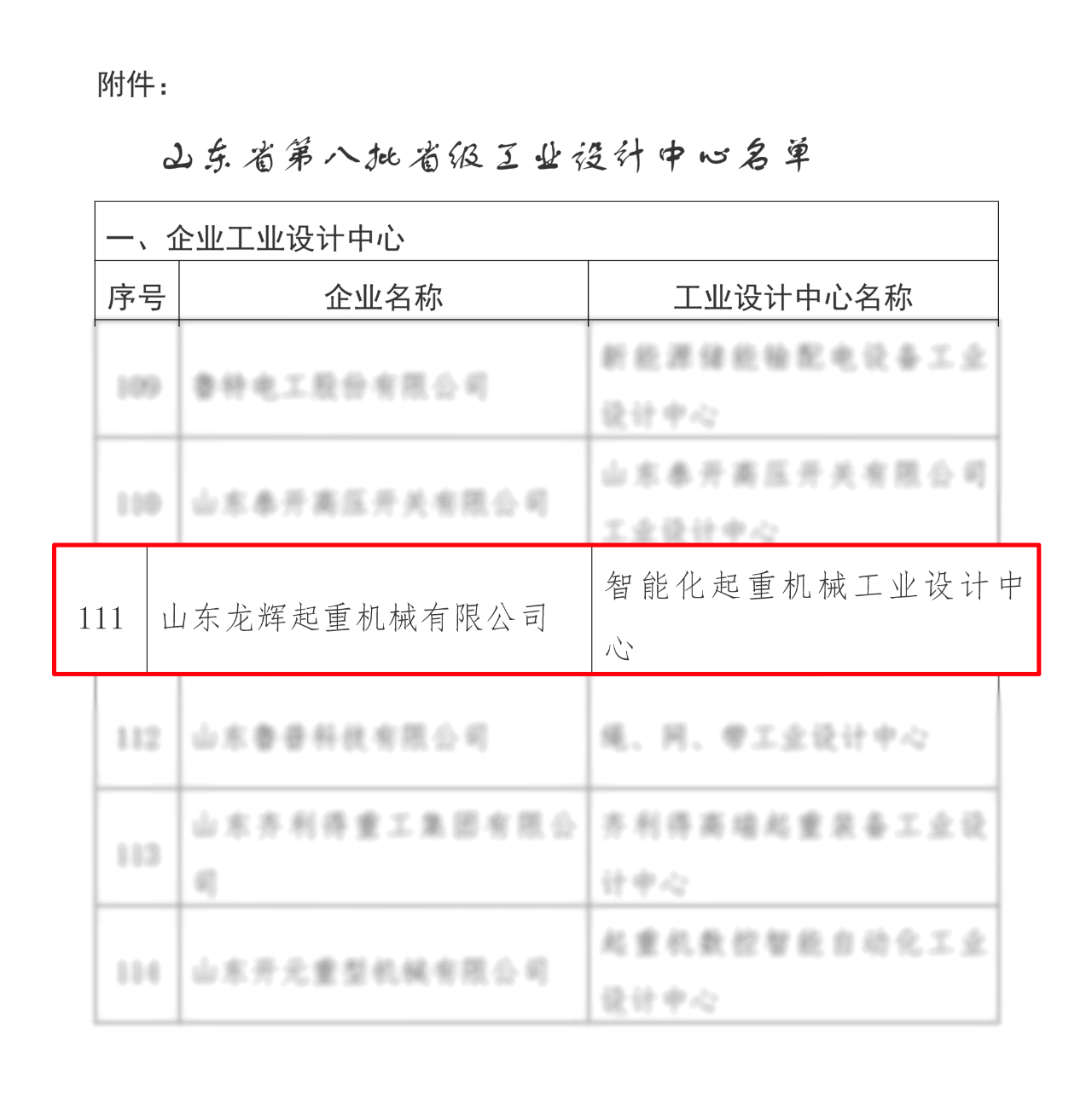 喜報(bào)!龍輝起重成功入選第八批省級(jí)工業(yè)設(shè)計(jì)中心認(rèn)定名單